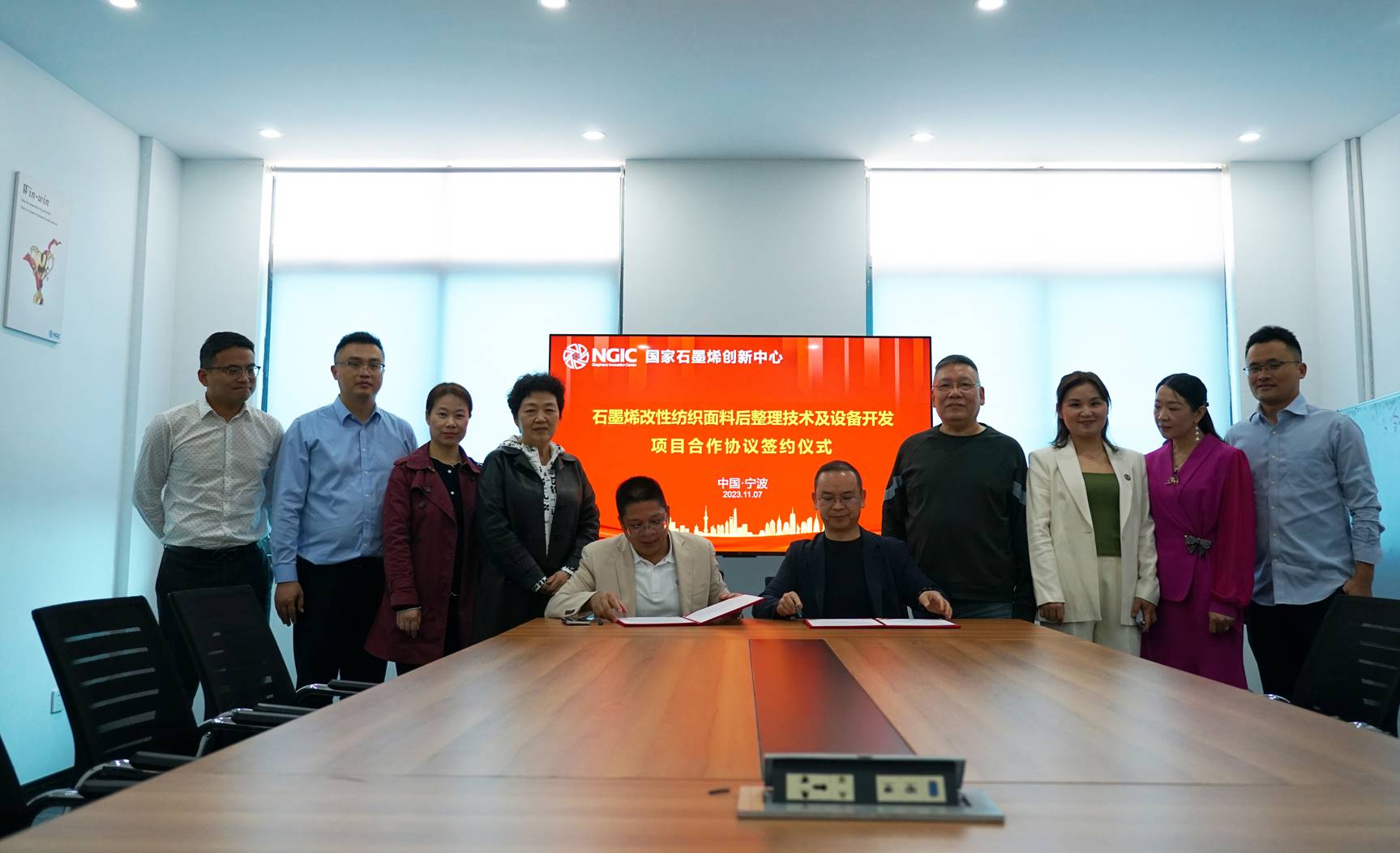 11月7日, 国家石墨烯创新中心主任、中国科学院宁波材料所研究员刘兆平和晋江创鑫机械有限公司董事长钟杰代表双方签约。中国印染行业协会副会长李瑞萍、副秘书长董淑秀、宁波尚烯科技有限公司董事长徐嘉伟等出席签约仪式。