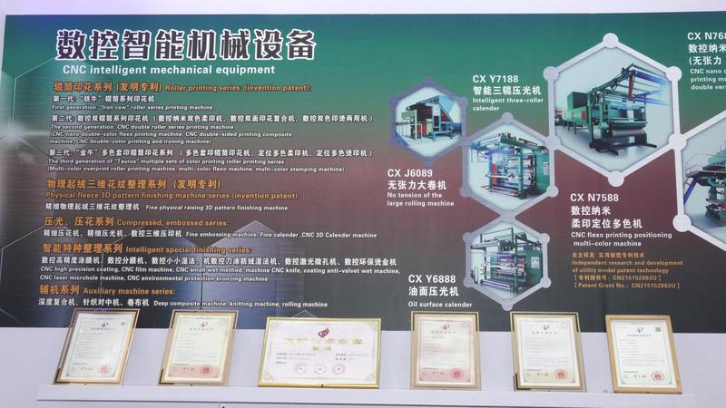 2023年9月,习近平总书记首次提出新质生产力的概念,这为创鑫机械的进一步发展指明了方向。2023年11月7日,创鑫机械与“国家石墨烯创新中心”、中国科学院宁波材料所签约共建“石墨烯改性纺织面料后整理技术及设备开发”项目,11月17日正式成立“石墨烯改性纺织面料后整理装备工程技术中心”。项目由创鑫法人钟杰亲自挂帅,担任工程技术中心主任,带领团队着手研发设计制造一系列智能装备国内国际首台套生产线,如数控物理起绒三维花纹机、数控双面纳米柔印复合机、数控多色纳米柔印机等先进设备。